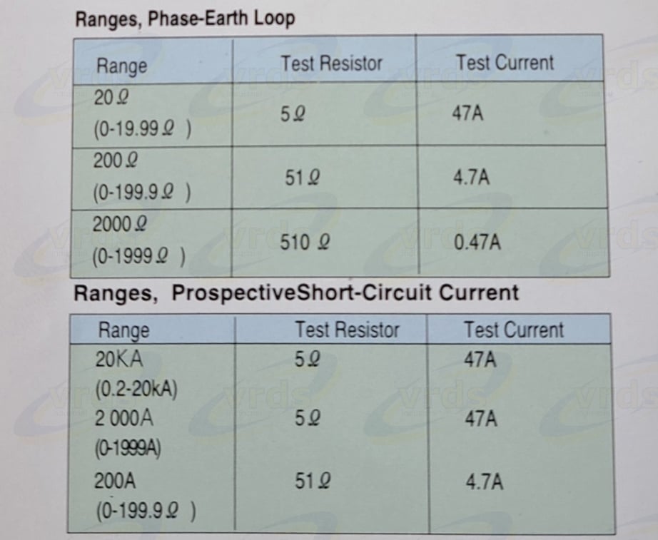 Designed to comply with the latest IEE wiring regulations. Prospective short-circuit current can be measured directly by connectig leads to phase and neutral, pressing the test button and releasing it.